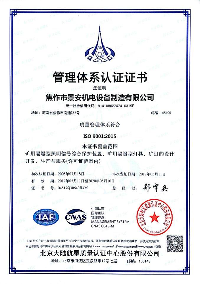 焦作市景安機電設備制造有限公司(原焦作市無線電一廠),是國家重點生產(chǎn)礦用防爆電子電器產(chǎn)品的專業(yè)企業(yè),全國煤炭行業(yè)機電產(chǎn)品定點生產(chǎn)單位,中國電器工業(yè)協(xié)會防爆電氣分會理事,市級礦用隔爆型工程技術(shù)中心,公司占地30000平方米,廠房10000平方米,ISO9001:2008質(zhì)量管理體系和A級計量認證企業(yè)。